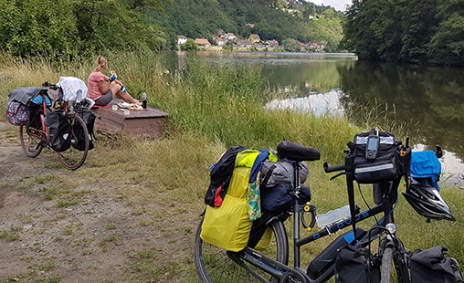 Cyklingen gick, till största delen, längs Eurovelorutterna. Dessa är en serie cykelleder på korsan och tvärsan genom Europa. Rutterna följer oftast de nationella cykellederna och är delvis finansierade av EU. Märkningen är ej enhetlig och stundtals mycket sporadisk så det är bra att ta med karta/kompass/GPS. Ha även en noga koll på de nationella markeringarna. Cyklingen inledningsvis plan då den följer floderna Havel, Elbe och Donau. Emellanåt blev det dock en avstickare upp på bergen då det saknades vägar längs floderna på sina ställen. På denna sajten finner ni också GPS-rutter för gratis nedladdning samt bilder och video från våra äventyr. Passa också på att besöka ett antal ställen på Unesco's världsarvslista längs rutten som Potsdam, Wittenberg, Prag, Český Krumlov, Palmanova och Aquileia för att nämna några längs vägen.